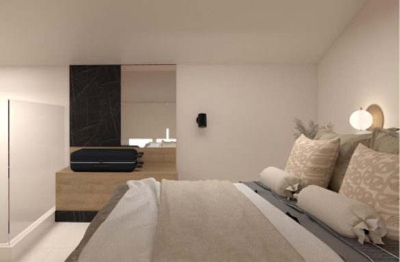 The 32-square-meter Nerina Deluxe Suite is a beautifully designed space that comfortably accommodates up to two adults. Blending contemporary aesthetics with warm, natural tones, the Nerina Deluxe Suite offers a bright and inviting atmosphere ideal for both short and extended stays.